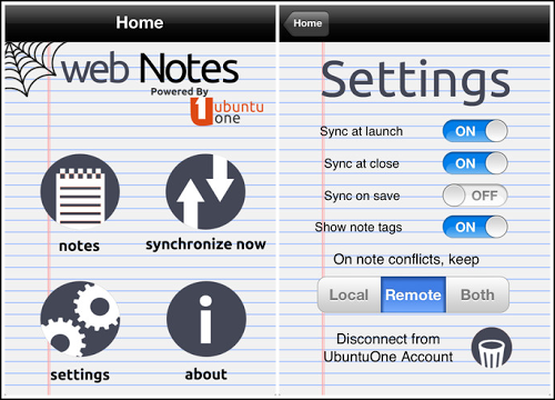 Particolarità di webNotes sta nel fatto che utilizza Ubuntu One, il servizio cloud offerto da Canonical, per sincronizzare i nostri appunti.