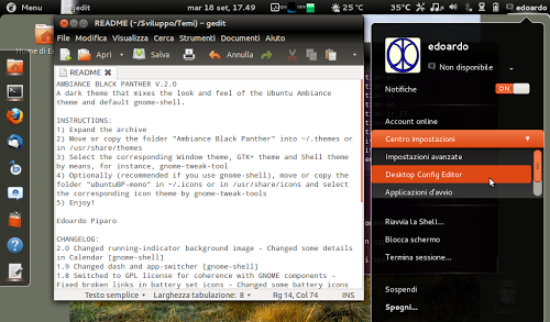 Ambiance Black Panther 2.0 è un progetto italiano che punta a migliorare l’integrazione di Ambiance sia su Unity che in Gnome Shell offrendo per quest’ultimo un tema dedicato. Il progetto porta soprattutto una migliore integrazione di Ambiente in Gnome Shell dai vari pulsati ai colori dei dettagli color arancio. Alcun4 piccole correzioni e migliorie arrivano anche nella versione per Unity, dal pannello color nero ad altre piccoli dettagli Ambiance Black Panther 2.0 offre anche un’ottima integrazione con Gnome Fallback o Classico.