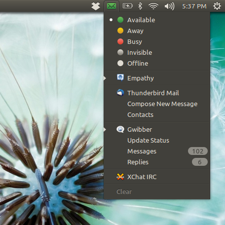 Il nuovo MeMenu ha portato anche la nuova icona nel collegamento nel pannello la quale ci permette anche di conoscere il nostro status attuale senza accederne al menu tendina tutto questo grazie a delle piccole icone poste affianco all’icona a forma di busta ognuna correlata con un diverso status.