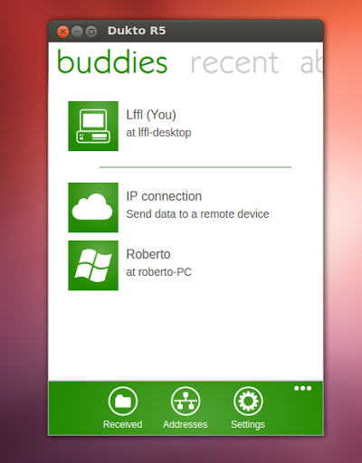 Semplicissimo quindi da utilizzare, con Dukto R5 diremo addio a configurazioni, protocolli, client, server e così via. basta solo avviare l’applicazione.