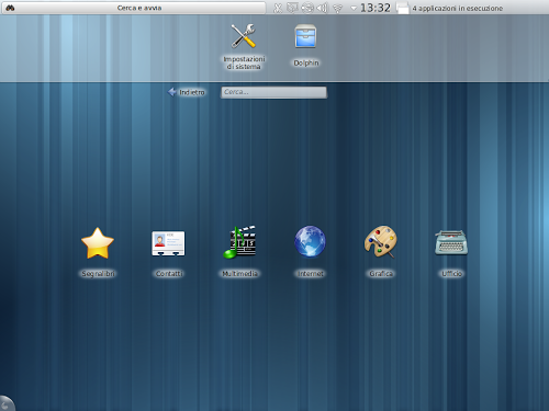 L’ambiente desktop inoltre si divide in vari spazi di lavoro molto particolari, il primo denominato Cerca e Avvia ci permette di accedere velocemente alle nostre applicazioni sia navigando nelle varie categorie oppure attraverso la barra di ricerca. Possiamo aggiungere anche le nostre applicazioni preferite nella parte alta del desktop cosi da avviarle velocemente.