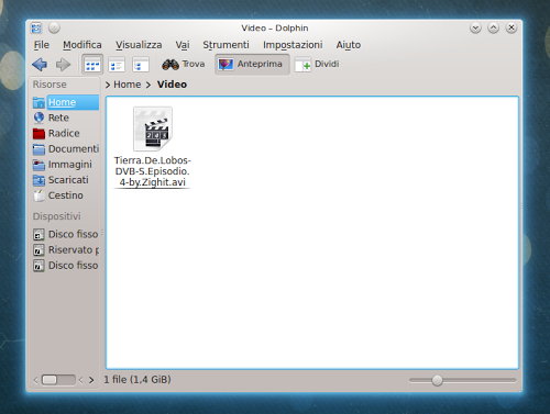 Non ci resta che avviare Dolphin e nelle cartelle contenenti file video cliccare su Anteprima, dopo alcuni secondi avremo un’immagine del video al posto della icona dedicata di file video di default in KDE.