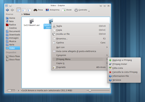 Per facilitarci l’utilizzo di FFmpeg su ambienti desktop KDE è disponibile un service menu davvero molto interessante.