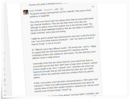 In questa pagina troverete il commento di Linus Torvalds nel post di Google+ di Sriram Ramkrishna