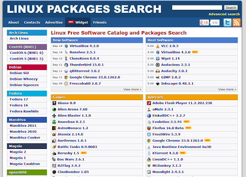 Per facilitare la ricerca di nuove applicazioni e il successivo download di esse è disponibile un’interessante sito web denominato pkgs – linux package search.