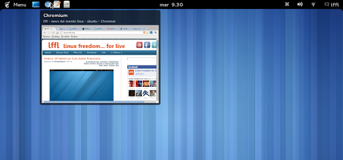 Gnome Shell ha completamente rivoluzionato la tanto amata esperienza utente offerta in Gnome 2. Basta 2 pannello il desktop environment si basa su un’icone pannello in alto, la gestione delle finestre attive (presente in Gnome 2 nel pannello in basso), menu e selettore degli spazi di lavoro sono stato sostituite dalla panoramica delle attività.
