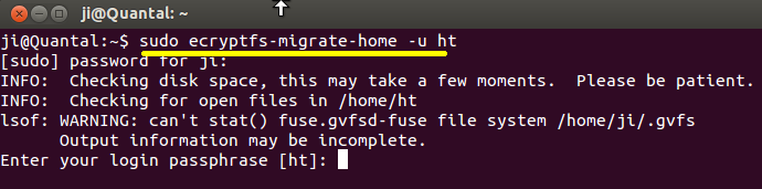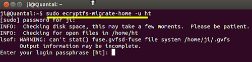 sudo ecryptfs-migrate-home -u username