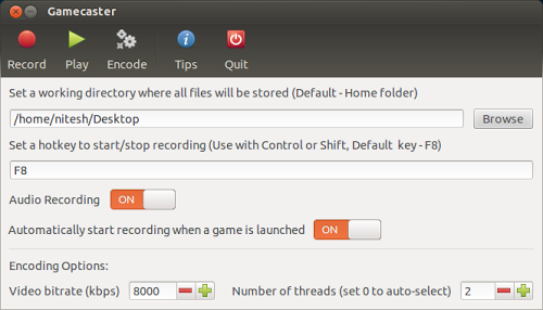 GameCaster ci permette di realizzare video anche in HD (alta definizione) dei nostri giochi, permette di selezionare e adattarsi al meglio per la registrazione attraverso la selezione del binario o con la verifica del game installato nella nostra distribuzione. Per facilitarci l’utilizzo (avvio / blocco / pausa della registrazione) durante il gioco possiamo utilizzare le scorciatoie da tastiera personalizzabili.