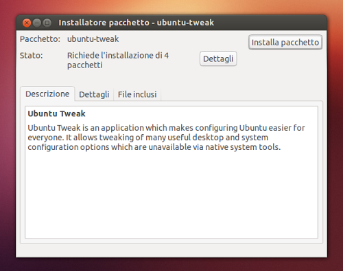 Per installare il pacchetto deb basta semplicemente cliccarci sopra, dopo alcuni secondi si aprirà Ubuntu Software Center che effettuerà un’elaborazione alla ricerca di eventuali pacchetti che dipendono dall’applicazione e al termine ci chiederà la conferma se vogliamo o meno installare il pacchetto deb.