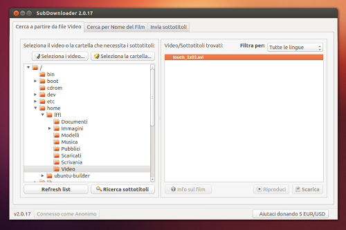 SubDownloader è presente nei repository ufficiali di Ubuntu, se vogliamo installare la nuova versione 2.0.17 su Ubuntu 12.10 dovremo digitare: