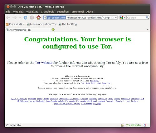 Tutto questo ci permette di utilizzare Tor con molta facilità evitando configurazioni ecc basta un click ed eccoci pronti a navigare in anonimato.