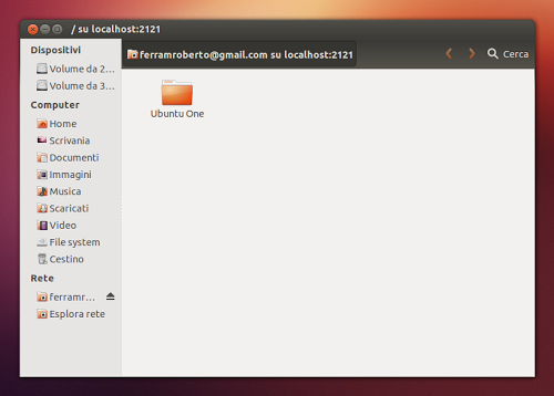 Dopo alcuni secondi nella sezione Rete del nostro file manager troveremo il nuovo collegamento con Ubuntu One. Da li troveremo la cartella nella quale possiamo gestire i nostri file.