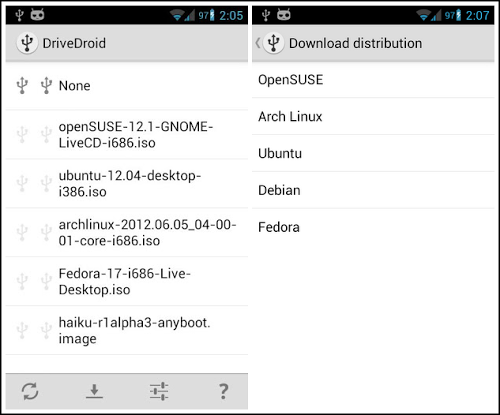 L’utilizzo è davvero molto semplice, l’applicazione scarica le ISO delle nostre distribuzioni preferite come Ubuntu, Debian, Fedora, openSUSE e Arch Linux. Una volta scaricate basta montare la distribuzione nel nostro dispositivo Android attraverso DriveDroid, colleghiamo il nostro dispositivo via USB e avviamo il pc e diamo il boot da USB e avremo la nostra distribuzione avviata.
