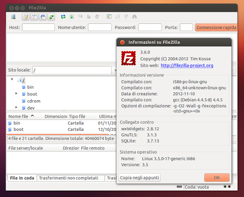 Per installare FileZilla 3.6.0 su Ubuntu 12.10 e 12.04: