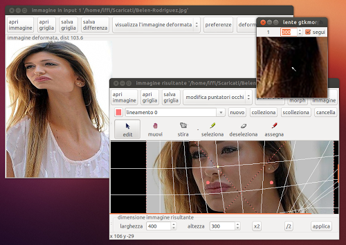 GTK morph si basa su 3 diverse finestre una dedicata alla deformazioni delle immagini, una alla creazione di animazioni e un’altra utilizzata come lente d’ingrandimento.
