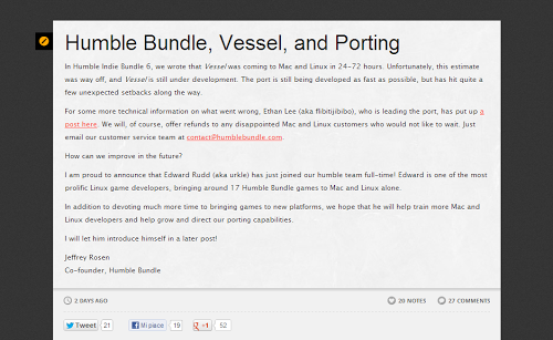 In questa pagina troverete l’annuncio ufficiale dal blog Humble Bundle, in questa pagina potete consultare lo sviluppo di Vessel in Linux.