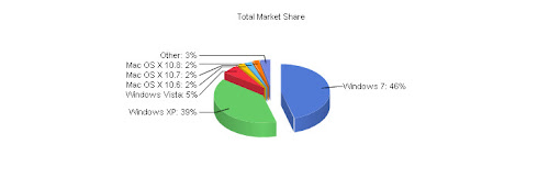 Secondo Net Applications, Windows 7 è il sistema operativo più utilizzato al mondo con il 46% al secondo posto troviamo immortale Windows Xp con 39% mentre Windows Vista detiene solo il 5%.