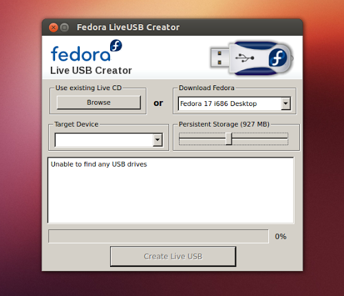 Il team di sviluppo di Fedora ha creato un’utile applicazione denominata LiveUSB Creator attraverso la quale possiamo installare Fedora su una pendrive anche in modalità persistente.