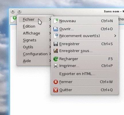L’idea sarebbe quella di integrare un pulsante nella barra del titolo dal quale poter accedere al menu questo porterebbe una maggiore facilità nell’accedere al menu. Il team KDE difatti già permette di nascondere il menu in alcune applicazioni attraverso la combinazione di tasti Ctrl+H, al posto di nasconderlo verrà introdotto il collegamento nel pannello.