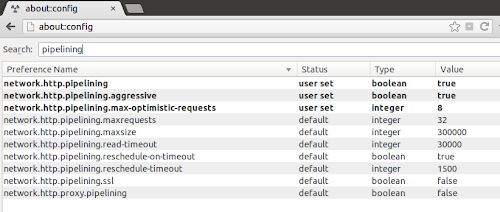 Possiamo comunque attivare HTTP pipelining in Firefox con molta facilità, basta digitare dalla barra degli indirizzi about:config e premiamo invio.