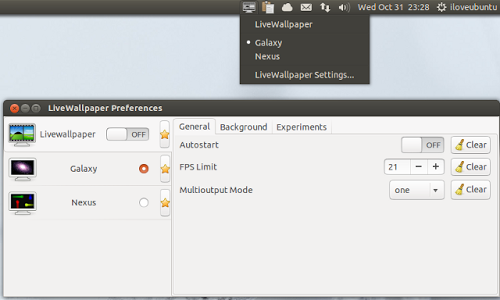 LiveWallpaper 0.3 è disponibile per Ubuntu 12.10 e 12.04 digitando: