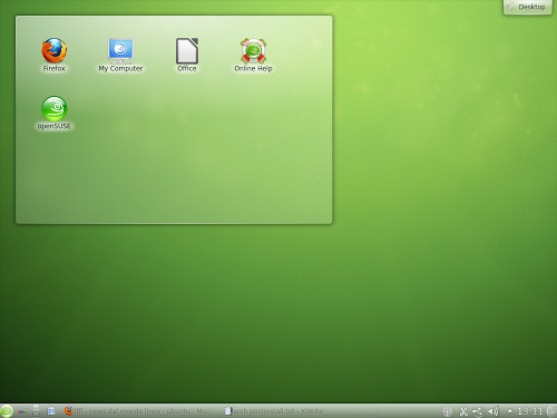 La distribuzione si basa sul sistema di pacchetti RPM di Red Hat e Zypper un’ottimo tool per la gestione a riga di comando. Non ha un’ambiente desktop specifico anche se negli ultimi anni predilige (o meglio sviluppa maggiormente) l’ambiente desktop KDE, sono disponibile comunque anche Gnome, LXDE e Xfce.