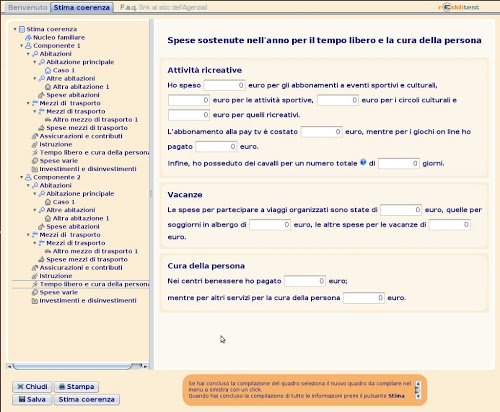 Con ReddiTest dovremo indicare il comune di residenza le varie spese sostenute durante l’ultimo anno suddivise in varie categorie (abitazione, assicurazioni, mezzi di trasporto ecc) e le varie entrate.