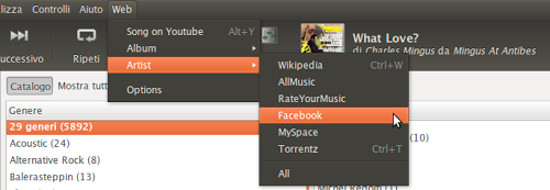 Rhythmbox Web Menu è un semplice plugin con il quale possiamo avere maggior informazioni sul brano , album o artista attraverso vari siti internet.