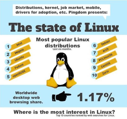 Il portale Pingdom ha rilasciato in questi giorni un’interessante iconografia nella quale troviamo lo stato attuale di Linux nel mondo.