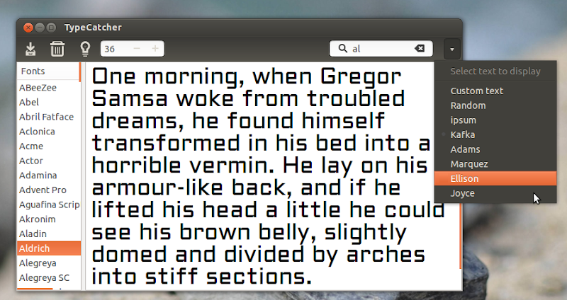 Attraverso una semplice interfaccia grafica, TypeCatcher permette all’utente di consultare i vari font presenti nella distribuzione Linux che online dal portale Google Web Fonts.