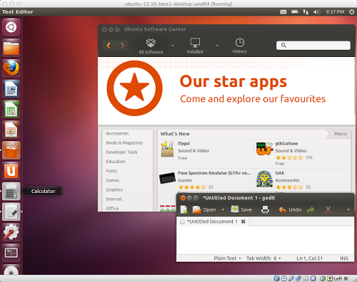 e avremo Ubuntu 12.10 avviato su VirtualBox