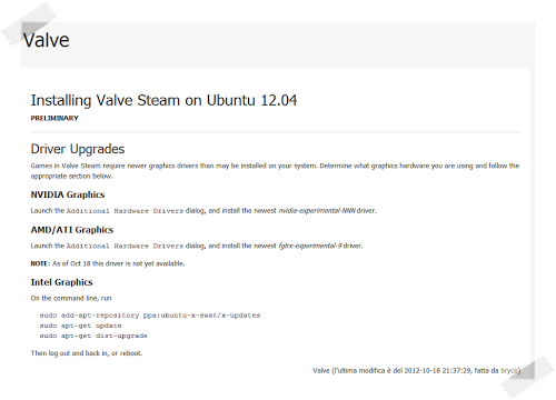 A questo sia Valve che Canonical hanno aggiornato i propri portali per aggiungere i primi dettagli sul supporto per la nuova piattaforma Steam per Ubuntu offrendo alcune specifiche su come installare i driver proprietari.