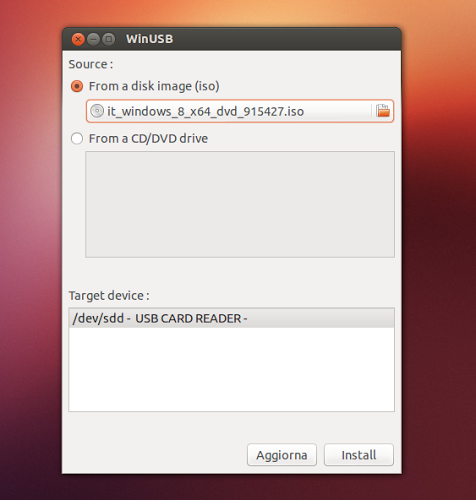WinUSB è una semplice applicazione attraverso la quale possiamo copiare Microsoft Windows su una pendrive, memoria Sd ecc il tutto con Linux.