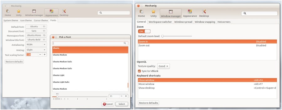 Mechanig è un’applicazione che punta ad offrire all’utente la possibilità di personalizzare facilmente l’intero ambiente desktop Unity operando nelle varie funzionalità dal Launcher, pannello, Dash, Compiz, ecc.
