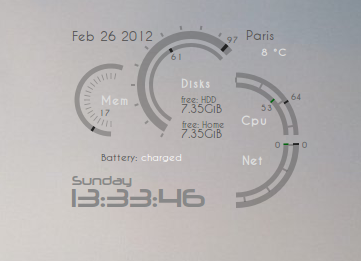 Oggi vi proponiamo HGM-Hudnet interessante tema per Conky che si posiziona in alto a destra del nostro desktop e che offre oltre la data e ora informazioni sul nostro sistema in un bellissimo stile semicircolare. Tra le informazioni in tempo reale fornite da HGM-Hudnet troviamo stato della batteria consumo di memoria, disco, cpu e connessione ed inoltre i gradi centigradi delle condizioni meteo attuali della nostra località preferita.