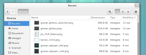 Una delle novità approdate con Nautilus 3.6.x è la nuova sezione dedicata ai file recenti. Attraverso la sezione recenti potremo consultare e accedere velocemente ai file avviati in precedenza compresi i file rimossi.