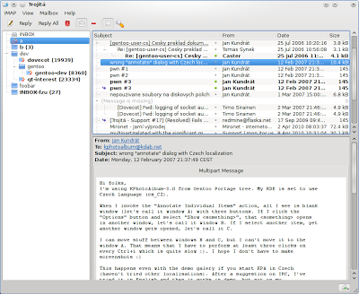 Ciononostante, trojita non necessita di avere installato KDE, quindi è possibile provare trojita anche su altri DE. Trojita è un’applicazione puramente qt4/ qt5, senza altre dipendenze.