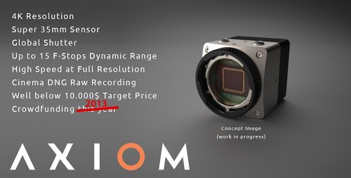 Il progetto Axiom, sviluppato dalla Apertus, prevede una videocamera digitale che permette di catturare video con risoluzione 4K / Ultra HD (4.096 × 3.072 pixel) da 150 fps attraverso un sensore da 35 millimetri.