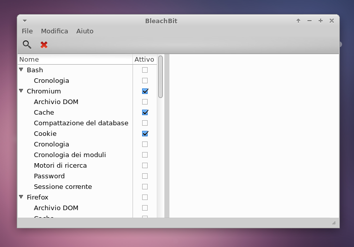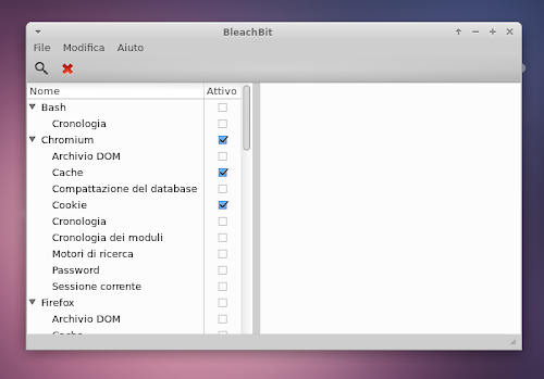 Per fare tutti questo basta installare BleachBit applicazione presente nei repository ufficiali delle principali distribuzioni Linux ( e disponibile anche per Windows) la quale ci permette di pulire il nsotro sistema con pochi e semplici click.