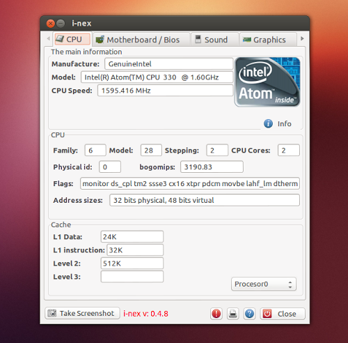 I-Nex è un progetto che punta ad offrire una valida alternativa ad CPU-Z in Linux offrendo un’interfaccia grafica molti simile al software per Microsoft.