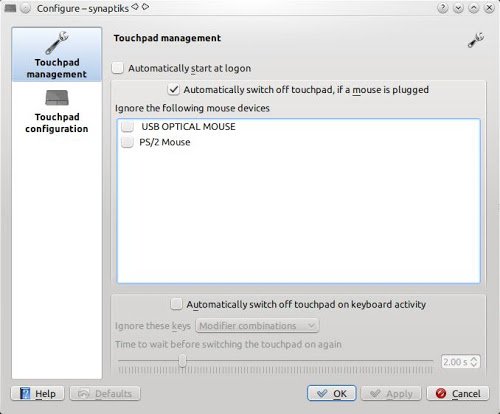 Se non vogliamo operare con i tasti funzione cercando di disattivare il touchpad quando collegato un mouse possiamo fare tutto questo automaticamente grazie al tool config-touchpad.