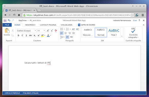 Per noi utenti Linux potremo quindi avere Microsoft Office senza averlo installato via Wine nella nostra distribuzione.Se un’amico ci invia un file in formato doc potremo quindi consultarlo senza dover installare LibreOffice ma semplicemente avviando il nostro browser. Ottimo anche da utilizzare come alternativa a Google Drive Documents o altra suite per l’ufficio online.