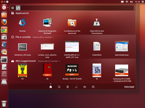 Una delle caratteristiche principali di Unity è il Dash la “lavagna” rivoluzionaria che ci permette di eseguire ricerche mirate all’interno del sistema operativo e online.