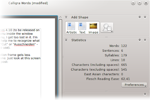Le varie migliorie rendono Calligra Words più piacevole da usare, inoltre l’applicazione gode anche le stesse caratteristiche di Calligra Author con la possibilità di esportare i documenti nei vari formati di eBook.