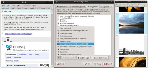CopyQ permette anche di modificare gli appunti condividere i vari link oppure avviare script dedicati (esempio per un’immagine specifica possiamo avviare Gimp oppure caricarla su documento di LibreOffice ecc). Con CopyQ potremo salvare gli screenshot, memorizzare gli URL in tab differenti, sostituire un testo in tutte le voci corrispondenti, caricare tutti i file su una directory per creare oggetti (ad esempio una galleria di immagini) e molto altro ancora.