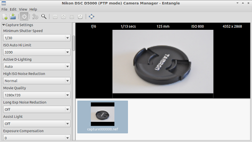 Entangle è un’applicazione open source che permette di operare su una fotocamera utilizzando la funzione “tethered shooting” da una semplice interfaccia grafica.