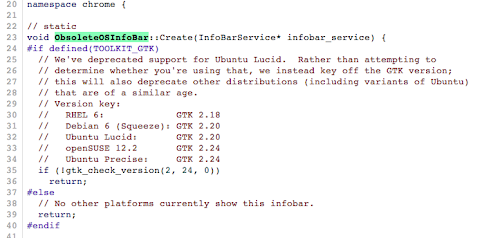 Dalla versione 26 di Google Chrome e Chromium 26 potremo installare il browser solo in distribuzioni con Gtk+ 2.24 o versioni successive, in pratica non potremo più aggiornare il browser ad esempio su Ubuntu 10.04 Lucid, Debian 6.0 Squeeze, RHEL 6 ecc.