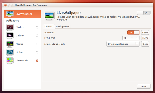 LiveWallpaper è un’applicazione sviluppata per migliorare la gestione degli sfondi in Ubuntu offrendo la possibilità di cambiare lo sfondo automaticamente ad orari prefissati, scaricare sfondi dal web e molto altro ancora.