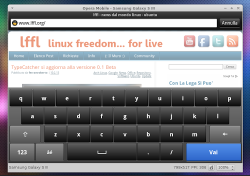 Opera Mobile Emulator non richiede nessuna installazione basta scaricare l’applicazione / browser da questa pagina estrarre il file tar.gz e cliccare su opera-mobile-emulator-launcher e dare Esegui per avviarlo.