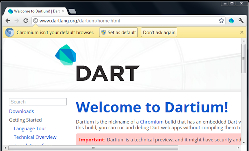 Attualmente Dartium è una versione ancora in fase di sviluppo, gli sviluppatori ne sconsigliano l’utilizzo come browser predefinito.